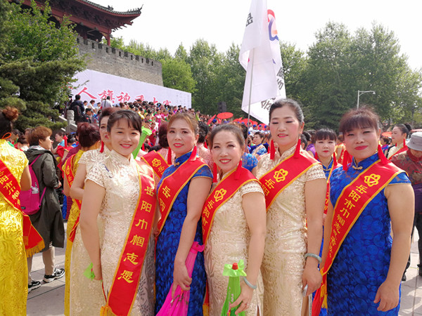 4月15日上午,由市妇联、市文广新局联合举办的“讲文明·重礼仪·树新风‘工行杯’”千人旗袍秀大赛在巴陵广场举行。市政协副主席秧励宣布大赛开幕,并与主办方领导共同按动了启动球。