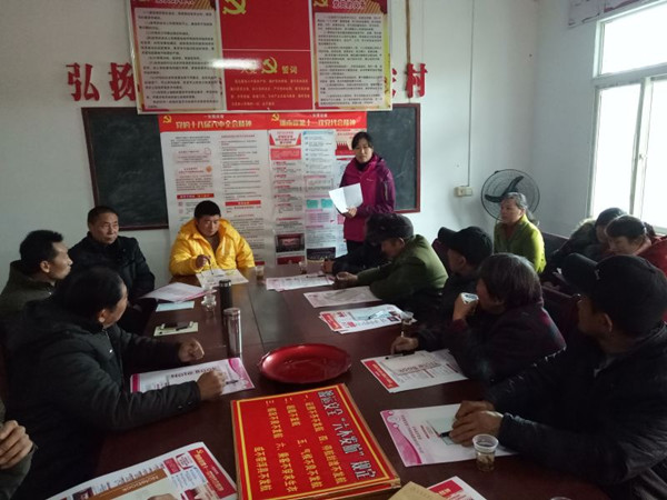 胡晓明副主席给村党员解读党的十八届六中全会和省第十一次党代会精神
