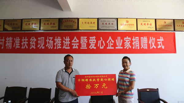 为了帮助建中村的贫困村民尽快脱贫致富,发展经济,岳阳富凯针织制衣有限公司总经理沈富荣向建中村捐赠10万元爱心款,帮助村改善基础设施建设。捐赠仪式上,楼区区委书记秧励对沈富荣女士的大爱给予充分肯定,并要求建中村村委将爱心款用在刀刃上,发挥最大效益,造福村民。