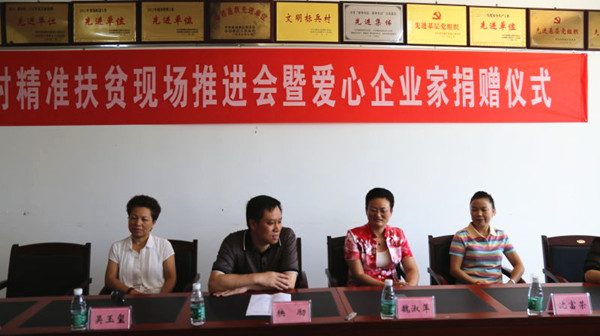 岳阳市爱心女企业家、岳阳富凯针织制衣有限公司总经理沈富荣向楼区郭镇乡建中村捐赠10万元爱心款