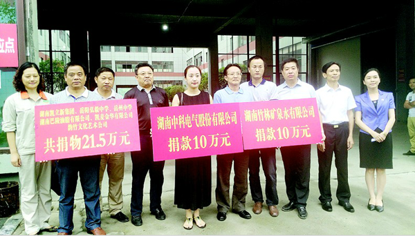 湖南竹林矿泉水有限公司董事长黄素萍再为灾区捐款10万元现金,湖南中科电气股份有限公司董事长余新捐款10万元
