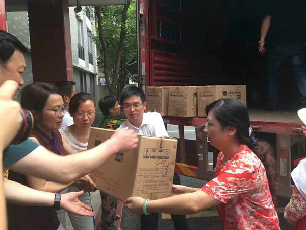 湖南科伦制药有限公司总经理邹瑰丽带领她的团队向灾区捐价值102万元的药品
