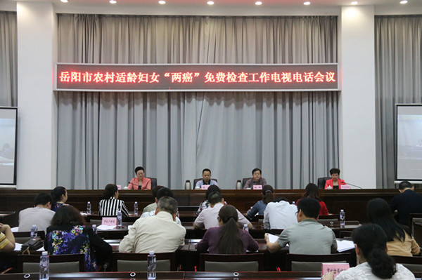 2016年6月2日,岳阳市人民政府召开全市农村适龄妇女“两癌”免费检查工作电视电话会议,安排部署全市农村适龄妇女“两癌”免费检查工作。岳阳市人民政府副市长李为出席会议并讲话,市人民政府副秘书长陈峰主持会议。市妇联党组书记、主席魏淑萍,市卫计委副主任邵爱军在会上作了发言。市委宣传部、市财政局、市统计局、市妇幼保健院等相关部门领导参加了会议。