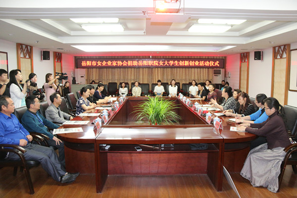 为进一步激发女大学生创新精神、创造活力和创业梦想,5月25日,岳阳市女企业家协会前往岳阳职业技术学院开展女大学生创新创业捐助活动。现场,市女企业家协会副会长、岳阳市富凯制衣有限公司总经理沈富荣为职业技术学院创新创业孵化园的女大学生捐赠了20000元创新创业基金,市女企业家协会副会长、岳阳云溪兴化书店经理李慧平捐赠了价值20000元的创新创业辅导资料。岳阳职业技术学院党委书记喻岳兰,市妇联党组书记、主席魏淑萍,市女企业家协会常务副会长郑宏翠等出席活动仪式。