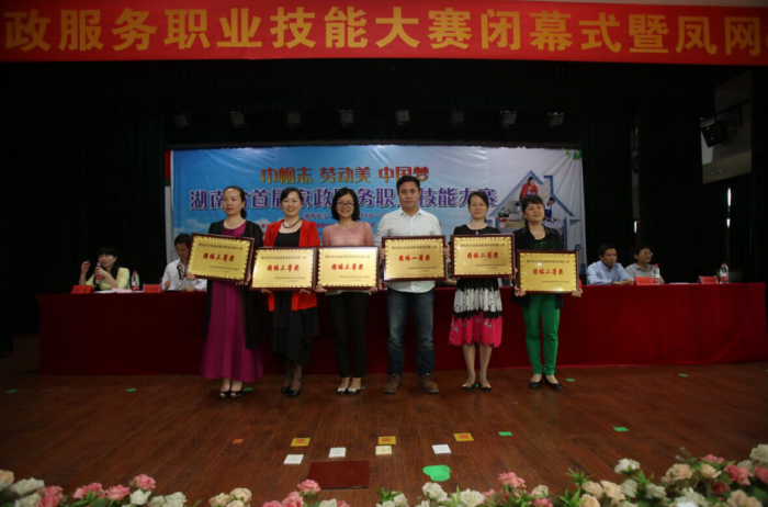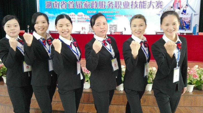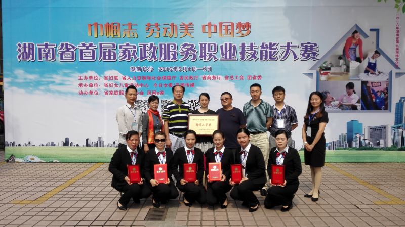5月6日,由省妇联、省人社厅、省民政厅、省商务厅、省总工会、团省委共同举办的湖南省首届家政服务职业技能大赛在湖南省妇女活动中心圆满落幕。本次比赛吸引了省直和市州的16支参赛队100余名队员参与,湖南师范大学、湖南女子学院、长沙民政职业技术学院还派出优秀的女大学生家政队伍参加。经过激烈角逐,我市参赛选手发扬团结拼搏的精神,赛出水平、赛出友谊、赛出风采,最终取得了团体第二名的优异成绩,荣获“团体二等奖”。6名参赛选手中,姜小平、宋慧君、向鑫3人分别荣获育婴师优胜奖、家政优胜奖、老护理优胜奖,并取得国家职业技能高级证书;张婉琴、江红秋、魏玮3人分别荣获育婴师入围奖、家政入围奖、养老护理入围奖。