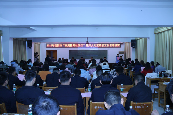为强化妇女儿童维权服务,3月9日上午,2016年我市“家庭律师社区行”启动仪式在岳阳市警官培训中心举行。各县市区妇联分管维权副主席、维权干部、婚调委调解员和女律师代表、巾帼志愿者代表、基层民警等100多人参加仪式。岳阳市委常委、政法委书记向伟雄,市人大副主任余炳锐,市政府副市长、市公安局局长唐文发,市司法局局长王湘涛,市妇联党组书记、主席魏淑萍等市政府妇儿工委其他成员单位负责人出席。