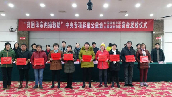 仪式上,省妇联党组成员、副主席鲁华代表省妇联向获得救助的患病妇女表示亲切的慰问,向重视妇女健康、关心妇女事业的岳阳市各级党委政府表示衷心的感谢,对岳阳市各级妇联组织开展的大量卓有成效的工作予以充分肯定,对平江县妇联积极作为,在广大妇女中深入持久开展健康知识宣教活动,认真开展调研摸底,积极争取资金救助,开展慰问关爱行动予以高度赞扬。鲁华副主席表示“两癌”贫困母亲是社会中的特殊群体,争取专项基金救助是造福贫困母亲、提高“两癌”贫困母亲生命质量、改善她们生活状况、帮助她们融入社会的关键,是关注民生的一项重要举措。希望各级妇联以项目救助活动为契机,以“关爱母亲,关注健康”为主题,进一步提高认识,完善机制,整合资源,进一步做好宣传发动、摸底调研、建档入库、随访帮扶等工作,扩大“两癌”检查覆盖面,提高早查早治率。希望广大妇女珍爱生命,呵护健康,重视并积极参加乳腺癌、宫颈癌的检查,做到早发现、早诊断、早治疗,远离两癌困扰。希望“患病”的姐妹树立积极乐观的心态,坚强勇敢地对抗病魔,把党委政府和社会各界的关爱化作战胜疾病的力量,用顽强的意志迎接美好的明天。