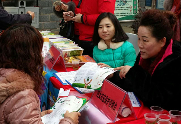 为认真宣传贯彻落实党的十八大和十八届三中、四中全会精神,活跃春节期间全市农村精神文化生活,把党和政府的关怀与温暖送到农民群众中去,市文明办、市妇联等单位早谋划,积极行动,开展“三下乡”活动。活动期间,市妇联发挥自身优势,组织巾帼法律志愿者免费为居民提供法律宣讲、咨询等服务,受到群众的好评。图为市妇联工作人员为居民提供法律咨询服务。