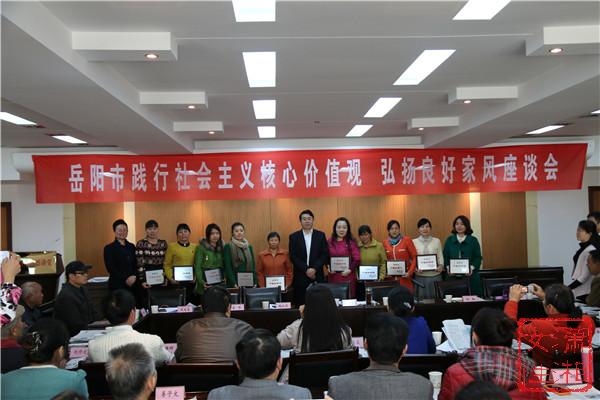 会议介绍了我市践行社会主义核心价值观,弘扬良好家风的工作情况。徐新启为“全国五好文明家庭”、“省级书香家庭”、“岳阳市最美家庭”、“岳阳市五好文明家庭”、“市十佳好婆媳”授牌。彭浩、阮梅、龚群香、曾娟分别代表获奖家庭做了典型发言。