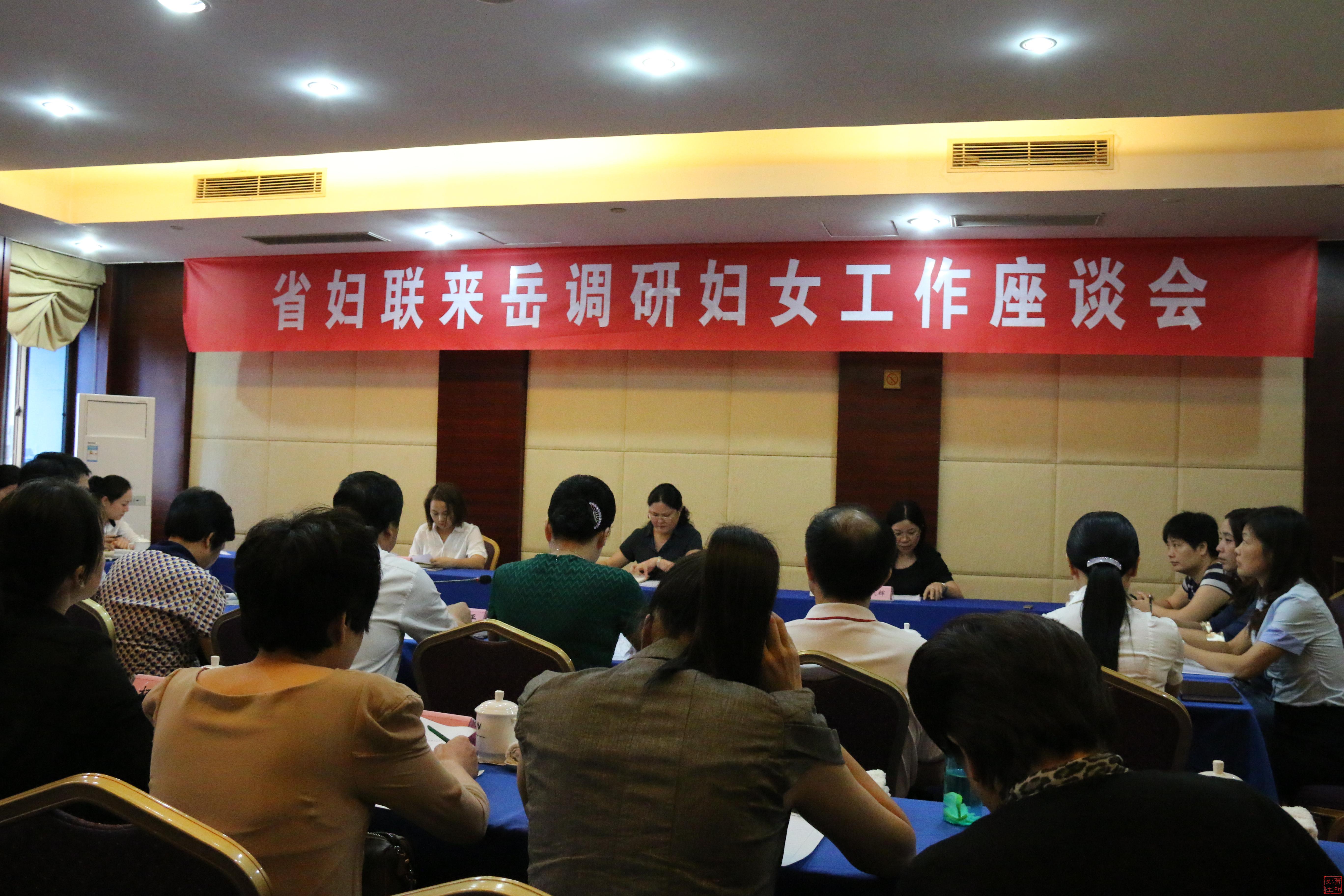 9月2日下午,省妇联副主席贺建湘一行来岳,就湖南省第十二次妇女大会顺利召开进行会前调研。省妇联宣传部长李凯辉,省妇联权益部主任科员金媛等一同调研。