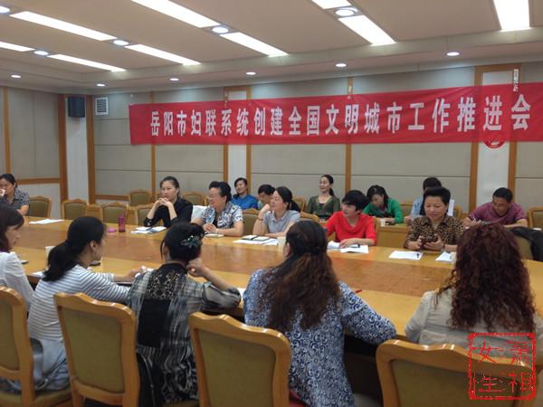 8月13日,岳阳市妇联召集城区妇联主席、市直妇委会主任、市女企业家协会会长、巾帼志愿者协会会长及机关全体人员开会,就岳阳创建文明城市工作进行再动员、再讨论、再部署、再落实。会议由市妇联党组成员、副主席杨勤主持。