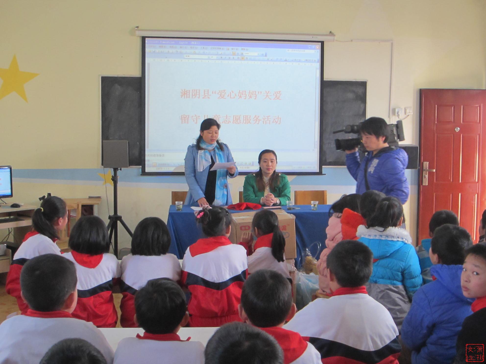 2013年3月5日上午9点。湘阴县妇联组织爱心妈妈来到黄金留守儿童学校,为41名留守儿童送去了400元助学款和礼物。陈丽主席并殷殷寄语受助学生,希望认真学习,以异的成绩回报爱心妈妈和社会。