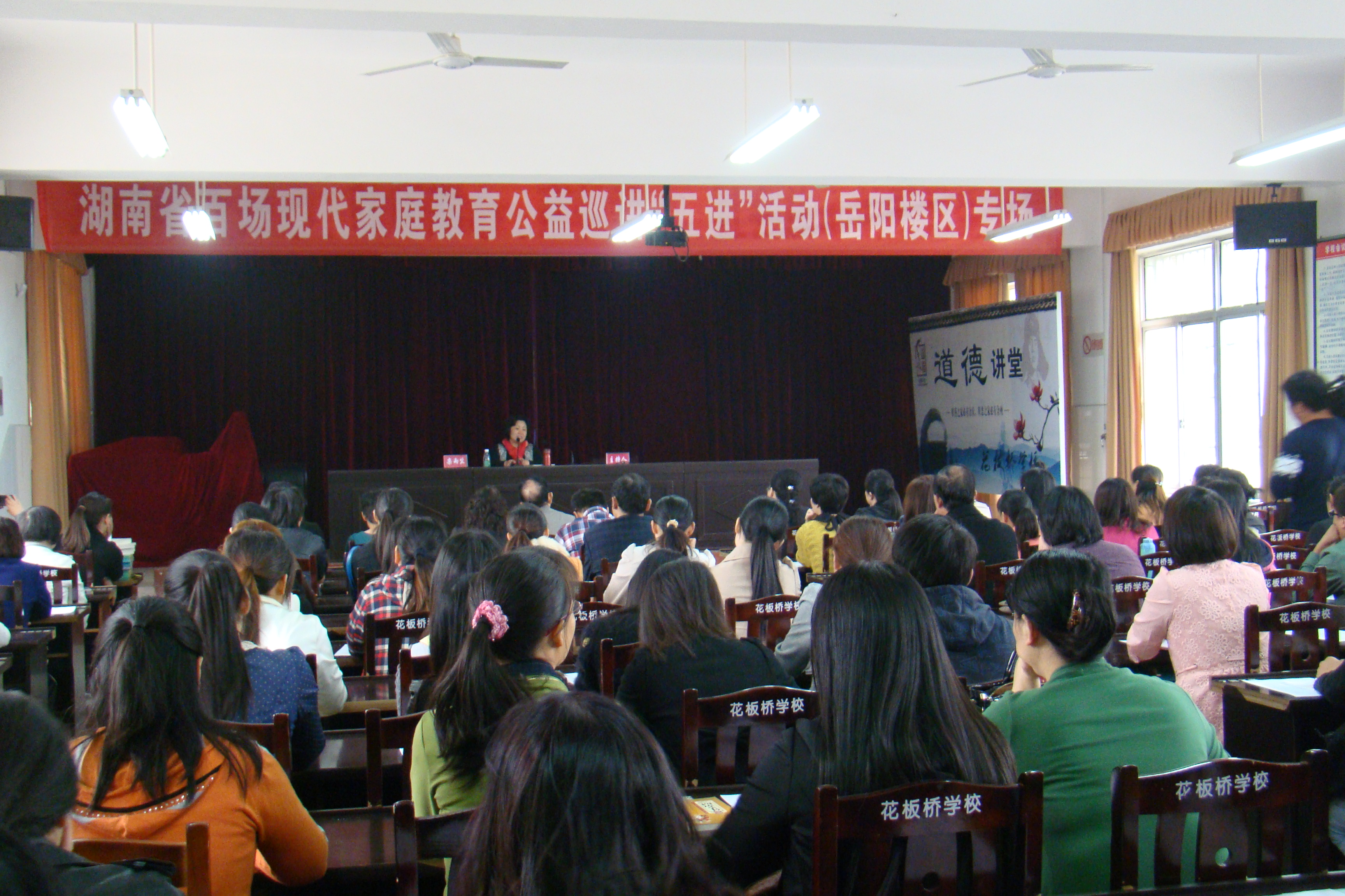 近日,湖南省现代家庭教育公益巡讲“五进”活动在岳阳市全面开展,按照市妇联的安排,目前已在岳阳楼区、南湖风景区、岳阳经济技术开发区等地多所中学、小学进行了巡讲活动,巡讲活动深受学校和 家长们的欢迎,几乎场场爆满。图为岳阳阳楼专场巡讲活动。