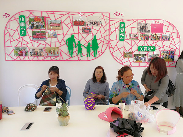 (南湖新区圣安社区妇女同胞在开展手工编织)