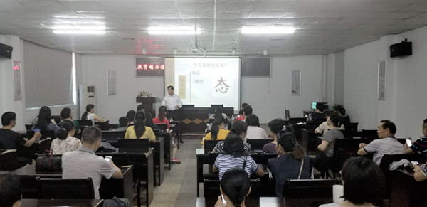“阳光心态是指具备知足、感恩、豁达、进取的心态。拥有阳光心态,要经常保持微笑,要有目标和追求,要学会改变、宽容接纳,学会积极关注和享受人生过程,学会感恩、心存敬畏。”杨国培老师的讲课深入浅出,通俗易懂。他还拿出事先准备好的一幅画,从心理学的层面讲述了“角度不同,对同一事物的看法就会不同”,并寄语现场家长“你希望孩子成为什么样的人,就把孩子当成什么样的人”“要先教孩子做人,再教孩子做事”。