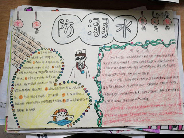 活动期间,针对暑假安全事故易发多发的特点,各班积极组织学生围绕防溺水、防雷电、防中毒、交通出行开展了主题班会,观看防溺水教育视频,撰写观后感,出了手抄报,签订了防溺水安全承诺书,使学生牢固树立起安全警惕意识。