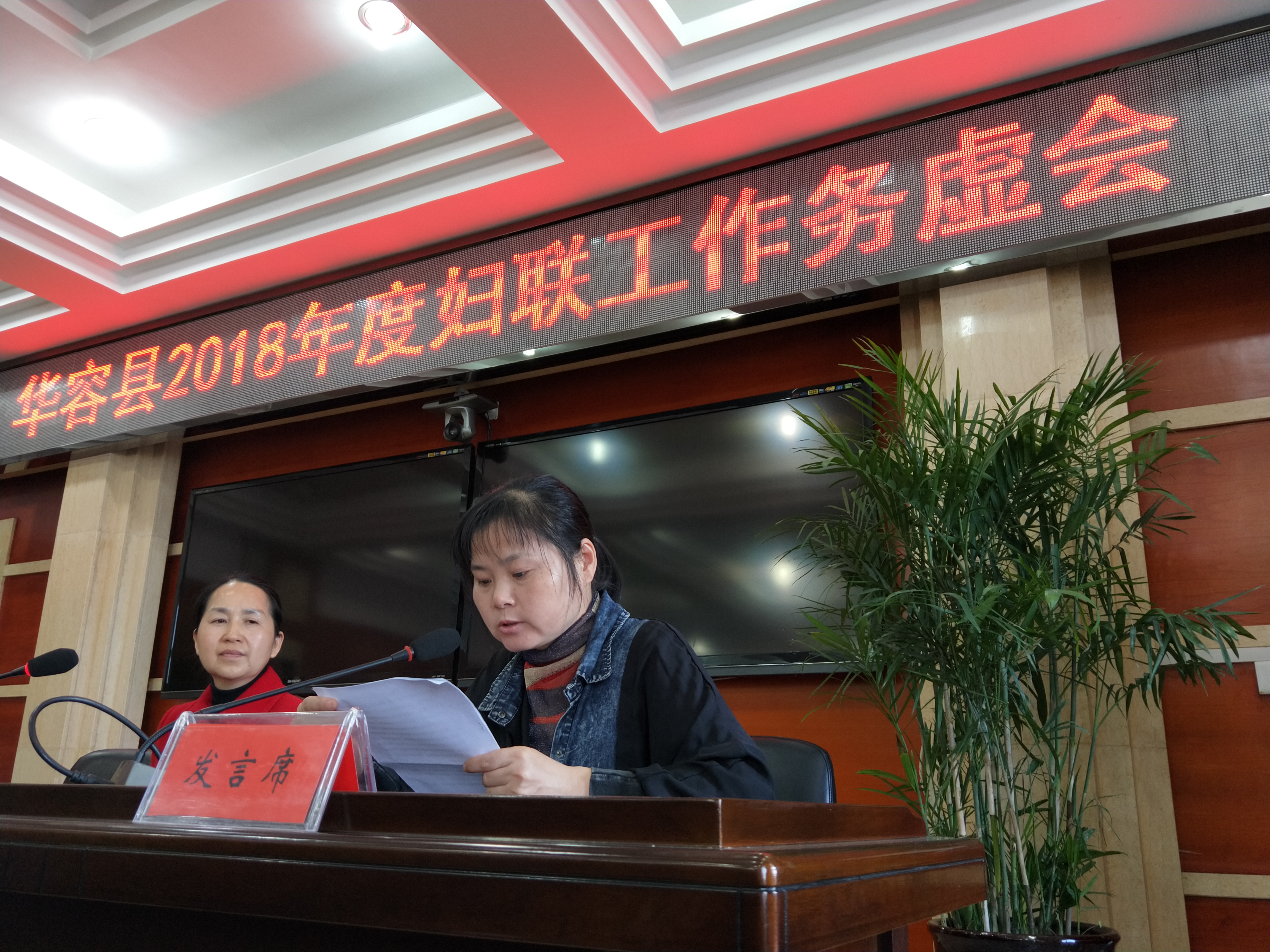 3月15日,华容县2018年度妇联工作务虚会召开,全县各乡镇妇联主席、县直各单位妇委会主任共计76人参会。务虚会深入学习贯彻党的十九大和市第七次妇代会精神,以目标为导向讨论“今年怎么干”,共同谋划2018年妇联工作,为推动妇女事业创新发展打好基础、做足准备。