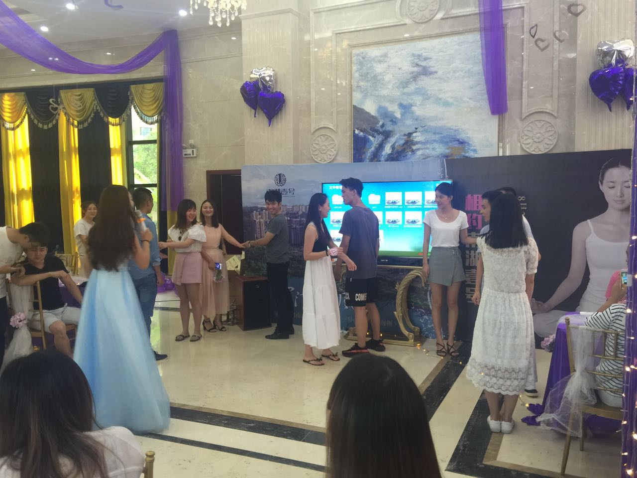 整场活动中,大家的热情一直高涨着。男女生们各自挑选了号码牌并选择心仪的对象坐在对面。喝着饮料,品尝着水果拼盘,互相聊起了家常。在真心对对碰、手工制作蛋糕等一系列的游戏互动中更是进一步拉进了他们的距离,所有的游戏都是一男一女搭配制度,胜出的获得了美容包、电话卡等精美礼品。现场配对环节,大家在小纸条上写上最心仪的异性的号码牌,结果有五对男女互相选择了对方,而最后票选的男女主角,帅气的17号和美丽的17号当之无愧。