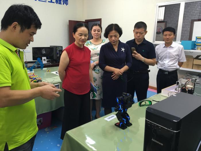 卢妹香首先来到县创客教育基地,实地参观了该基地VR虚拟现实体验区、机器人工厂、3D打印屋、品读空间等功能室,听取了工作人员相关情况介绍,并现场体验了现代科技的神奇与乐趣。参观过程中,卢妹香对创客教育基地给予了充分肯定,认为华容县敢为人先、勇于创新,创客教育走在了全省前列,有效落实了“大众创业 万众创新”理念,这种好的创新服务理念值得进一步推广。