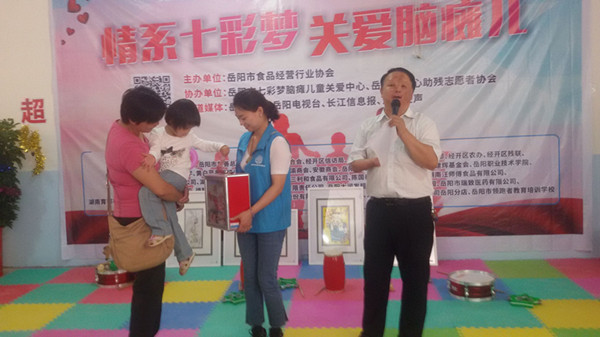 5月20日,由岳阳市食品经营行业协会主办,岳阳市七彩脑瘫儿童关爱中心、区妇联等多家单位承办的“情系七彩梦,关爱脑瘫儿”活动在我区康王乡举行。30多家企事业单位和爱心人士,来到位于我区康王乡茶园村的七彩梦脑瘫儿童关爱中心,为住在这里的十几名脑瘫儿患者送来了热切的关怀和问候,爱心人士纷纷慷慨解囊,募集善款24200元及食用油、牛奶等物资。作为孩子们共同的“家长、守护者”——七彩梦脑瘫儿童关爱中心负责人李昌珍,也是一位脑瘫孩子的母亲。“脑瘫孩子是折翼的天使,虽不能像普通孩子一样拥有正常的生活和学习,但他们还有梦想,他们需要爱”。李昌珍动情地说,每一位脑瘫孩子背后都有一个饱尝煎熬的家庭,幸好一路走来,她并不孤单,有爱心志愿者一路相随。