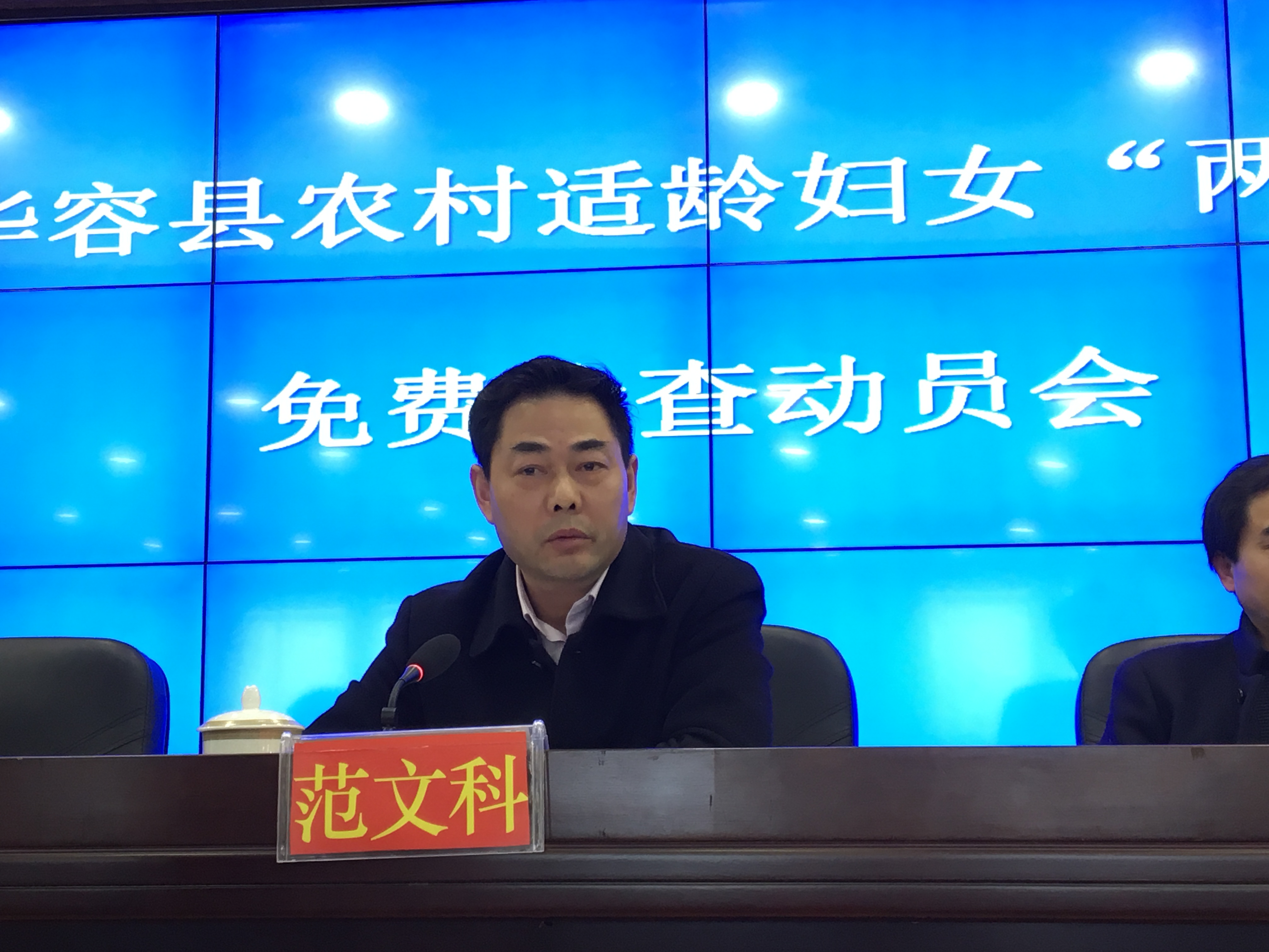 在会上,副县长范文科作了讲话,他指出, 农村适龄妇女“两癌”免费检查是省委、省政府重点民生实事项目;是落实中央和省委脱贫攻坚重大战略部署的实际行动;是贯彻落实中国妇女发展纲要的重要举措,他要求宣传发动、人员培训、组织保障、责任追究“四到位”,要把这一事关妇女健康、家庭幸福、社会和谐的民生工程抓好抓实。