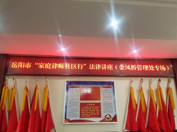 3月3日,我区金凤桥管理处开展“家庭律师社区行”活动。来自湖南碧灏律师事务所的刘律师就妇女普通关心的家庭暴力,民事纠纷等各方面的法律问题进行了现场讲解。律师与到会的70多名妇女代表面对面进行了交流互动,同时现场还免费发放了《反家庭暴力法》、《妇女维权法律法规政策宣传手册》等法律读本。此次讲座取得了良好的社会反应。