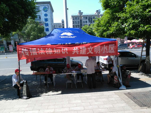 名法律志愿者通过发放宣传资料、现场接受咨询等形式,重点向社区居民宣传了《人民调解法》、《法律援助条例》等法律法规知识,现场解答群众关心的工伤保险,婚姻、房产纠纷等法律咨询
