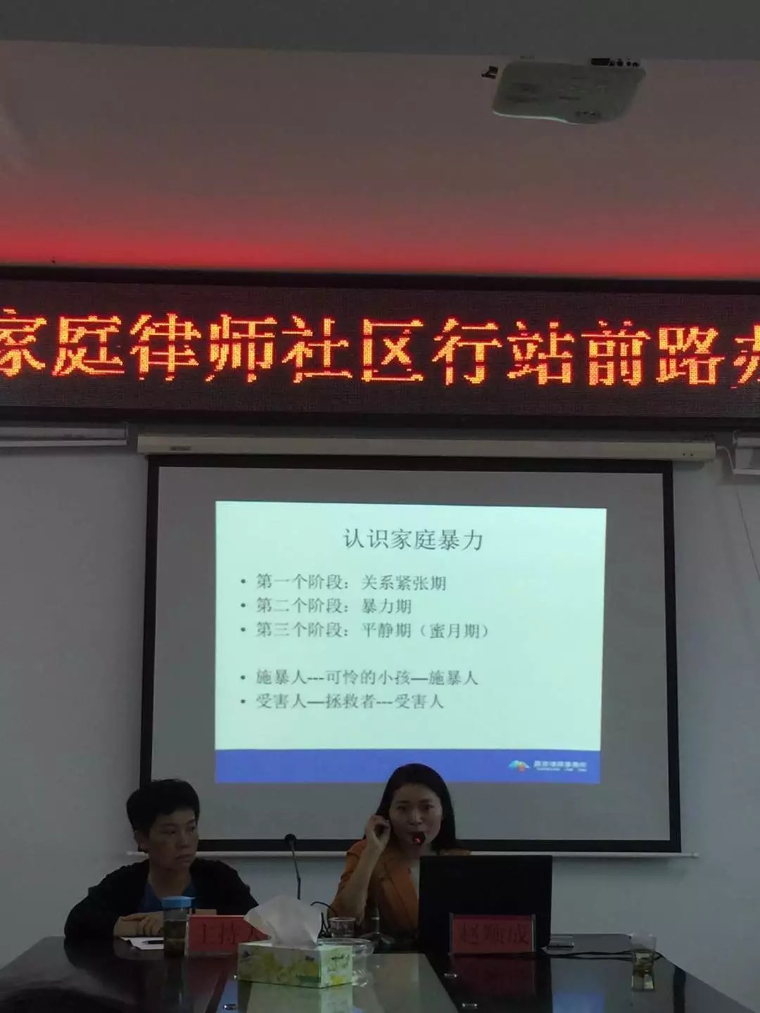 18日上午,由区妇联、站前路街道妇联联合举办的法律进社区活动在站前路街道办事处群众文化活动中心举行。湖南昌言律师事务所知名律师赵顺成受邀给社区职工群众上了一堂生动的法律知识课,主要让大家了解家庭暴力及法律维权方面的知识。街道办事处各社区辖区范围内的居民及社区职工等50多人参加了讲座活动,大家听后深感受益。