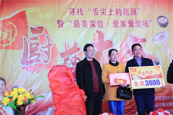 3月11日上午11点10分,由屈原管理区妇女联合会主办、岳阳市惠众粮油专业合作社承办的寻找“舌尖上的屈原”暨“最美家庭?爱家爱美味”厨艺大赛总决赛在惠众农庄完美收官。