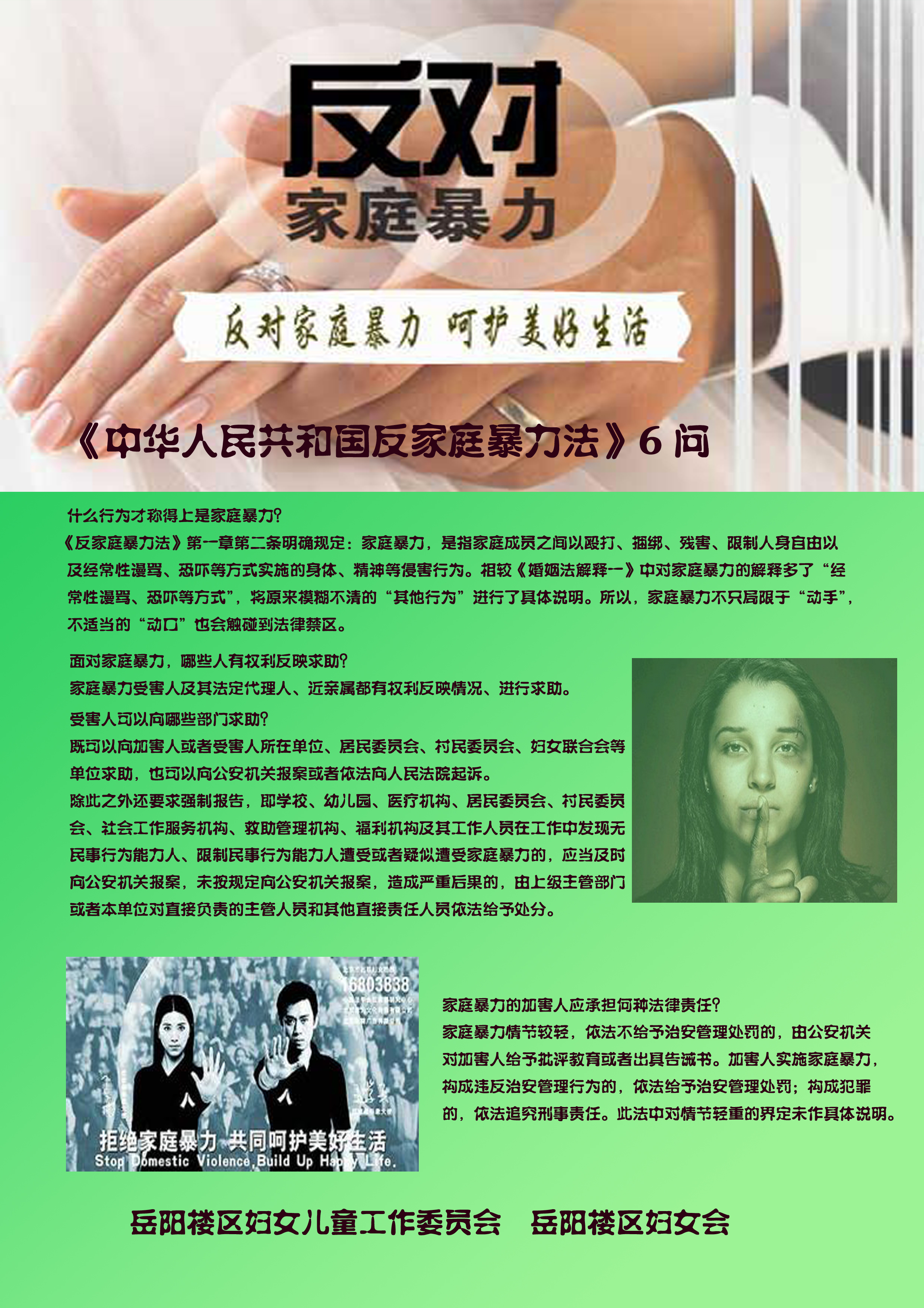 会上,岳阳楼区政府副区长、妇儿工委主任高鸽子向全区各职能部门、广大家庭及成员发出“反家暴·创平安·促和谐”倡议,倡导每一个家庭争做反家暴的宣传者,每一名家庭成员争做反家暴的实践者,各职能部门争做反家暴的维护者,携手建设好自己的小家庭,积极维护好社会的大家庭。