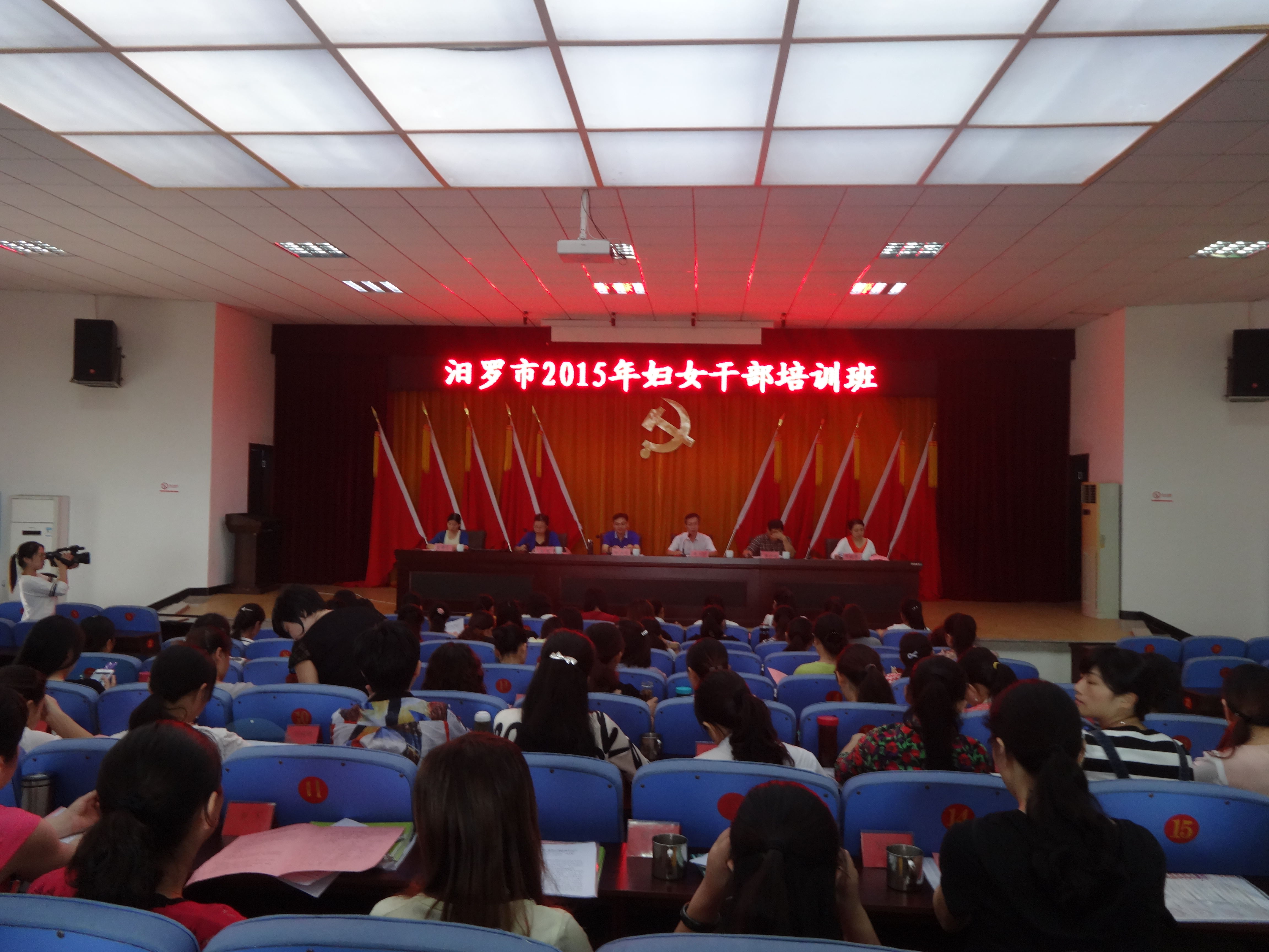 9月24日-25日,汨罗市妇联组织举办2015年妇女干部培训班。全市各乡镇场妇联主席、各市直单位妇委会主任共计100余人,来到市委党校集中学习2天,提高她们的政治素质和创新、发展意识。市委常委、组织部长、统战部长林治学及市妇联、市委党校相关负责人出席开班式。