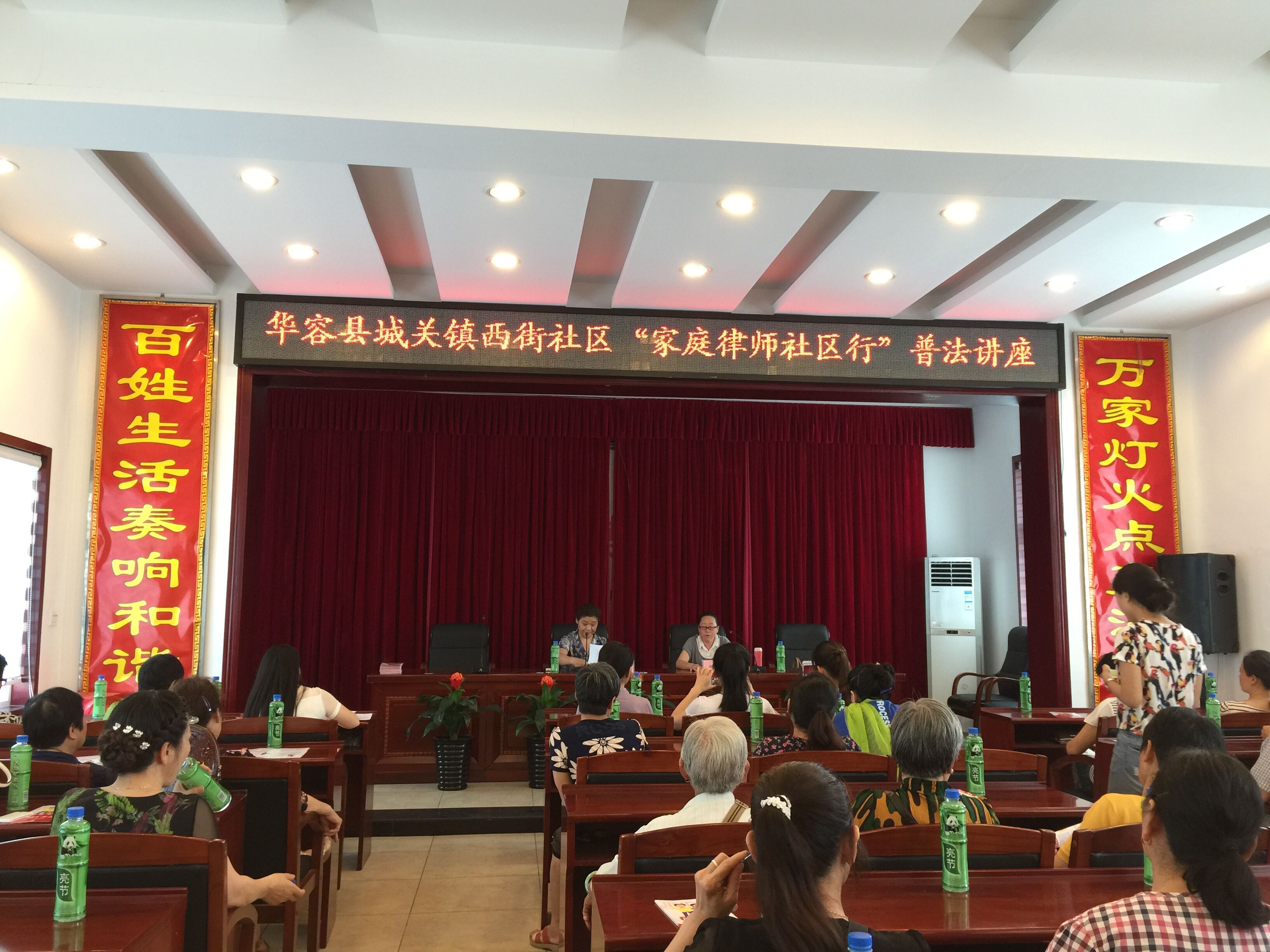 近日,湖南榕城律师事务所陈芳律师受华容县妇联邀请,到华容县城关镇西街社区、华阳街社区等社区举办了6场普法讲座、陈芳律师结合案例从家庭暴力、婚姻财产分割、儿童性侵等等生活中常见的问题进行了深入浅出的讲解,每场听演讲人数都在70人以上,其中女性每场超过50人,课堂上不少居民和陈芳律师亲密互动,针对身边和自身遇到的法律困惑进行现场咨询,陈芳律师都耐心的一一进行了解答。“家庭律师社区行”活动开展以来,听讲者反响很好,认为讲座内容通俗易懂,实用性很强,对今后的婚姻家庭生活很受益。