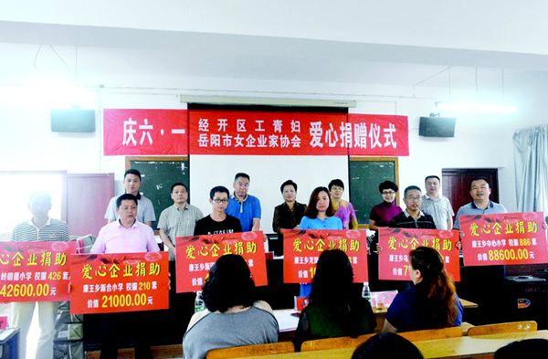 在六一国际儿童节到来之际,5月29日,经开区工青妇,岳阳市女企业家协会开展的爱心捐赠仪式在康王中心学校举行。据了解,康王中心学校共有六所全日制学校,两所公办幼儿园,在校学生1151人,近几年来,各校在课改教学质量上下功夫,在陶冶学生情操上下功夫,举行了“快乐阅读 健康向上”“少年向上 真善美伴我行”等主题教育学生演讲比赛,充分挖掘学生潜能,张扬学生个性,康王乡教育呈现欣欣向荣的景象。在捐赠仪式上,岳阳市女企业家协会捐赠了校服,经开区工青妇捐赠了图书,康王乡各小学校长接受了捐赠,随后,市妇联、区教文局向捐赠企业表示感谢,并希望有更多的爱心人士参与其中,助力康王乡的教育事业。