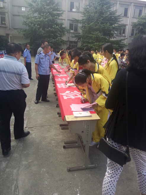 为了使广大学生认清毒品的危害,进一步增强防毒、拒毒意识,确保“学生不涉毒、校园无毒品”,今天上午,区禁毒办、区妇联来到北港中学进行“珍爱生命,远离毒品”宣传教育工作。大课间时分,全校师生认真观看了禁毒宣传画展,并在条幅上郑重签名承诺,学生们纷纷表示,要珍爱生命,远离毒品。