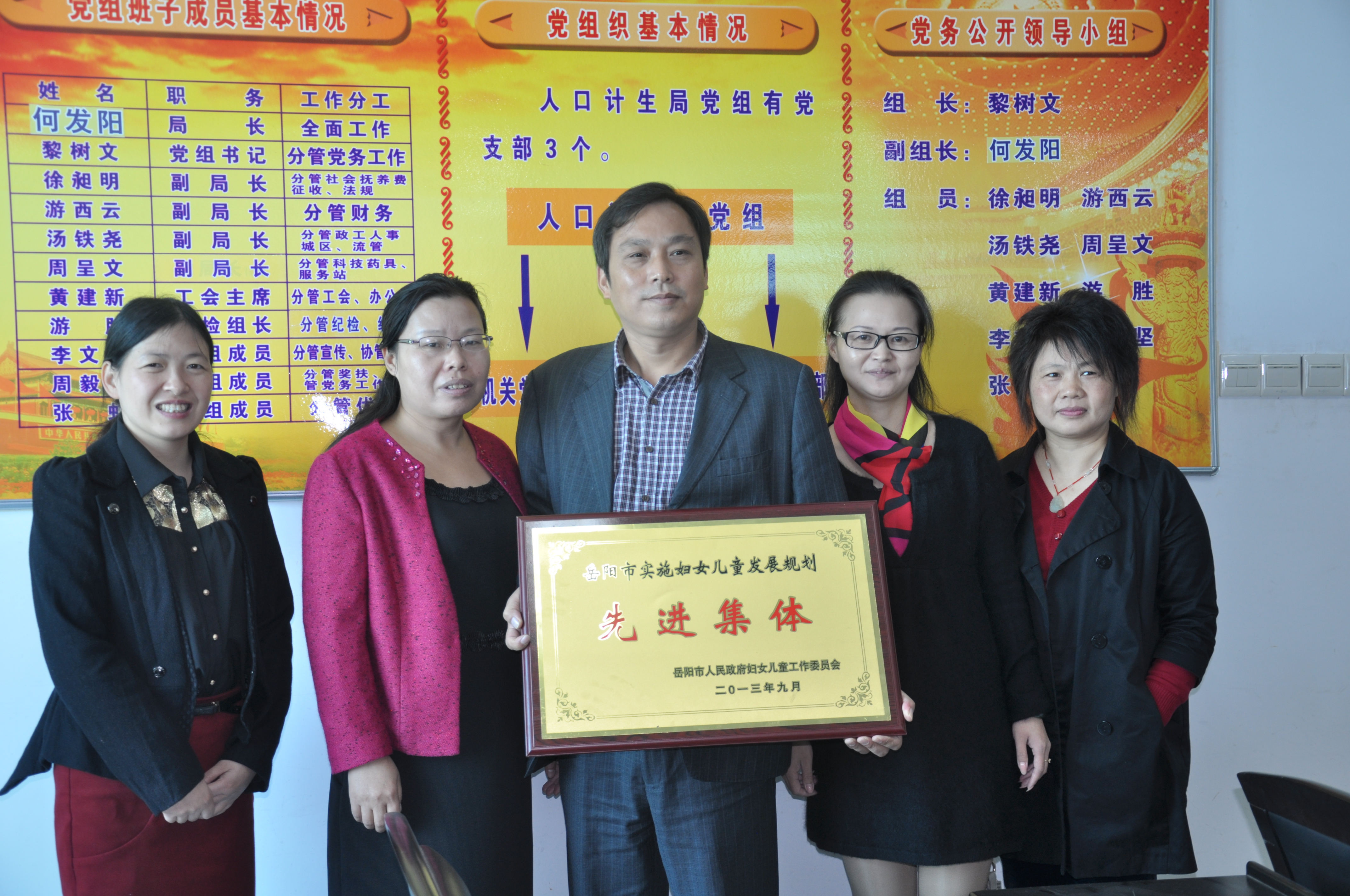 近日,市人口计生局被岳阳市人民政府授予“岳阳市实施妇女儿童发展规划”先进集体。