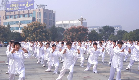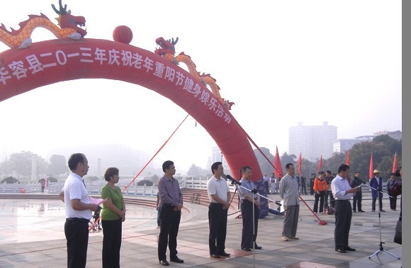 上午8点38分,汪涛宣布活动正式开始。随后,由近600名老年人同台表演的《24式简化太极拳》拉开了活动帷幕。来自全县城区18个健身队伍表演了《32式太极剑》、舞蹈《爱的奉献》、《梅花雪》等24个节目,尽情展示出老年人动人风采和飒爽英姿。