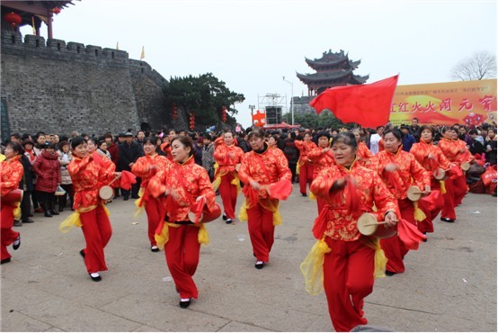 在岳阳全民健身的热潮中,岳阳楼区洞庭街道沿湖社区活跃着一支主要由离退休女职工组成的腰鼓队——夕阳红腰鼓队。这支腰鼓队成立于2004年,平均年龄60岁,参加者从最初的十人,发展到近三十人。她们以打腰鼓为乐,除了经常练习和健身活动外,先后参加街道、区、市内各种宣传和表演活动,受到各方面领导和群众的热烈欢迎,为岳阳文明创建工作建设做出了积极贡献。她们的主要事迹和经验是: