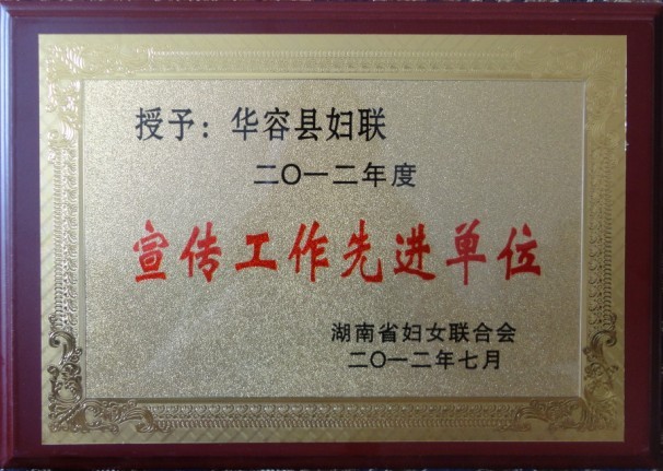 7月26日上午,全省市州、县市区妇联主席工作会议在长沙召开。会上,华容县妇联受到大会表彰,荣获湖南省妇联系统2012年度“宣传工作先进单位”荣誉称号。