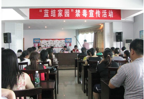2012年6月20日上午,岳阳市南湖风景区综治办、妇联、共青团三部门在求索街道办事处联合开展了“6·26”国际禁毒日“蓝结家园”禁毒宣传活动。参加活动人员有:区工委书记王伊亮,市妇联纪检组长曾琴、市妇联权益部长袁勘爱,团市委副书记万东、团市委权益部长李琦,区工委委员、管委会副主任李军辉,区工委委员、区办公室主任张朝东,区副调研员、工会主任周湖新,区综治维稳办、区妇联、团区委、南湖派出所,区各街道办事处、社区负责人及部分工作人员代表,街道社区居民及家庭代表,青年志愿者、巾帼志愿者,禁毒妈妈代表等。区工委书记王伊亮作了重要讲话,区青年志愿者、巾帼志愿者代表各一名共同宣读禁毒倡议书,区禁毒妈妈联盟单位代表——求索街道办事处书记毛晋峰做代表发言。最后还请南湖派出所所长刘金瑞授了一堂禁毒宣传课。