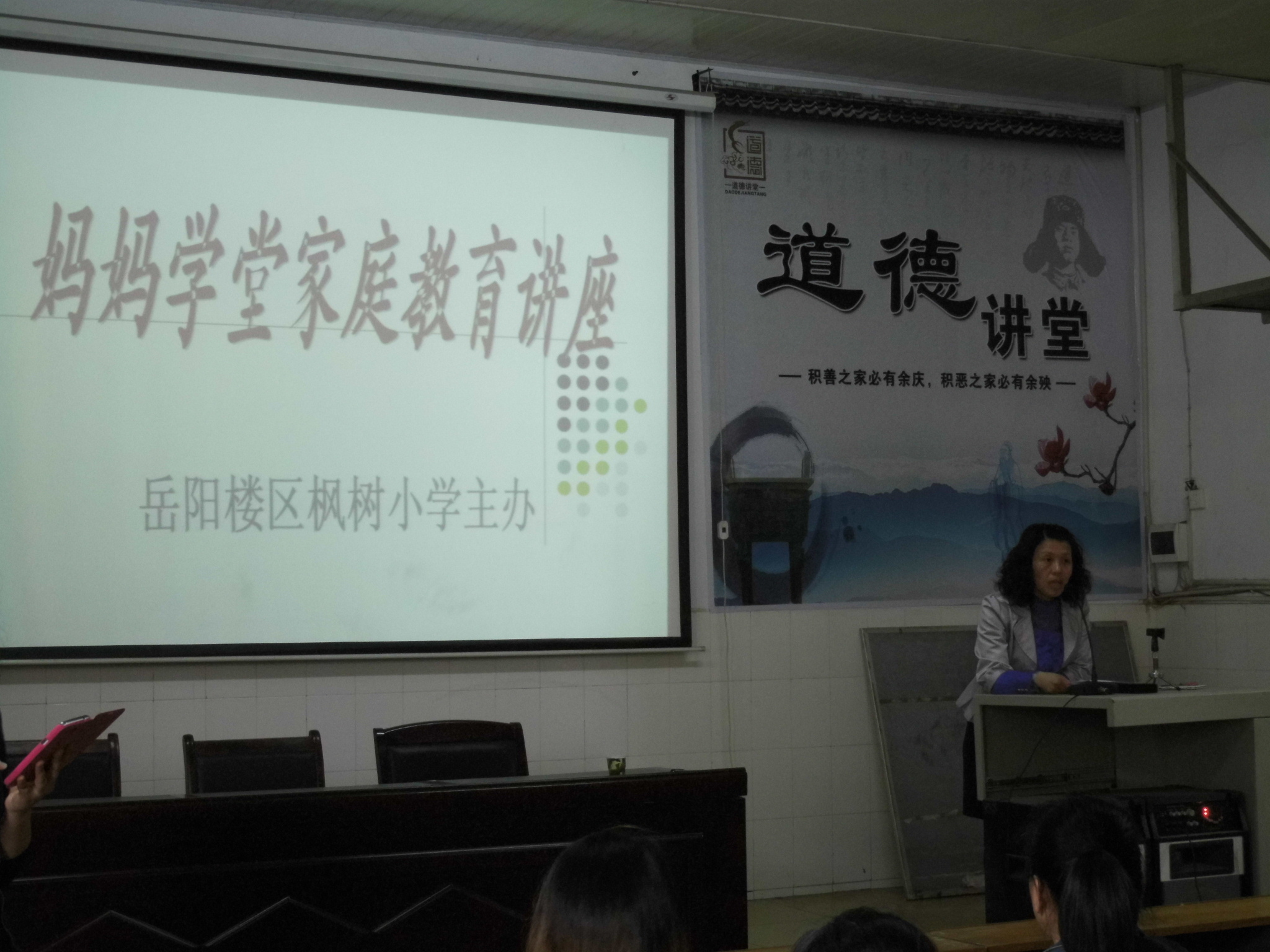 女士进行讲课,该校300多名妈妈代表参加讲座。为了切实做好家庭教育宣传实践活动,发挥家庭教育对未成年人健康成长的重要作用,今年来,枫树小学开设“妈妈学堂”,帮助和引导妈妈树立正确的家庭教育观念,掌握科学的家庭教育方法,提高妈妈教育水平,曾多次邀请知名的国家认证心理咨询师及区家庭教育讲师团成员来校面向学生家长进行家庭教育专题系列讲座。