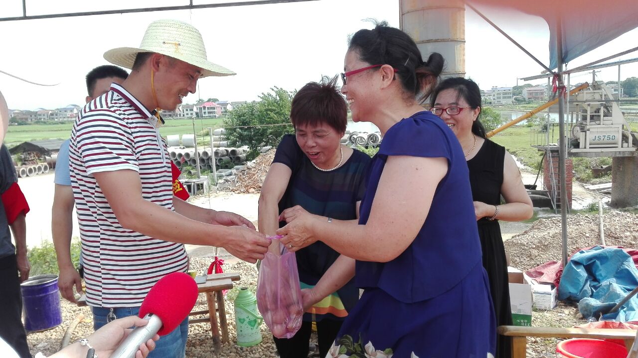防汛人员夜以继日的奋战一线,很是幸苦。为此,刘均华总想做点什么。于是她和村里的姐妹们商量,是否可以为防汛救灾人员送些慰问物资,表示一点心意。其他人也有这个想法,一拍即合。晚上回去,刘均华便和姐们们着手开始准备,买水果,煮鸡蛋,熬绿豆粥……次日一大早,刘均华便和姐妹们拿着爱心物送给全线10个防汛点的值守人员。刘均华笑着说:“他们太辛苦了,要多吃些鸡蛋,营养、饱肚,不容易饿”。