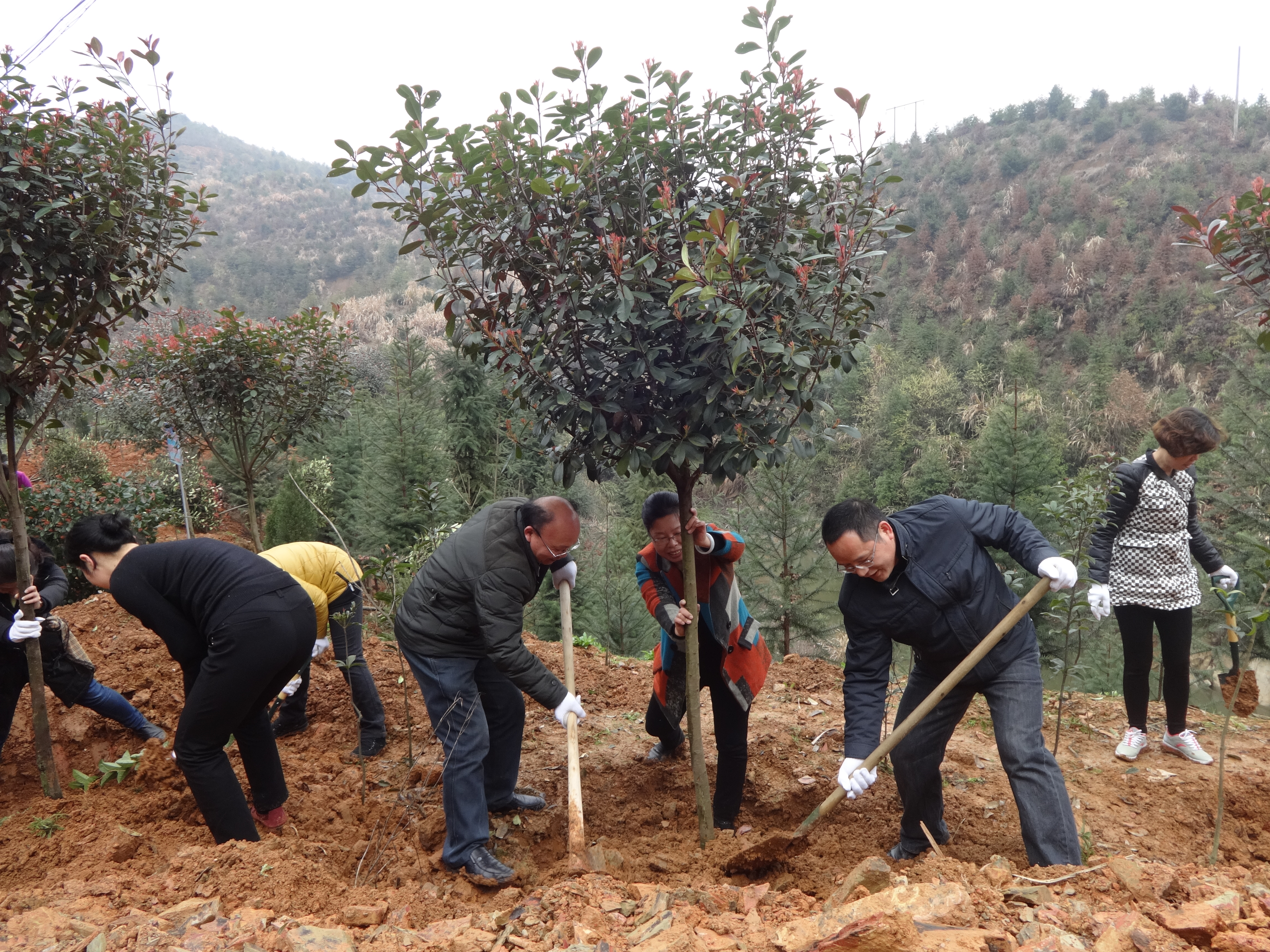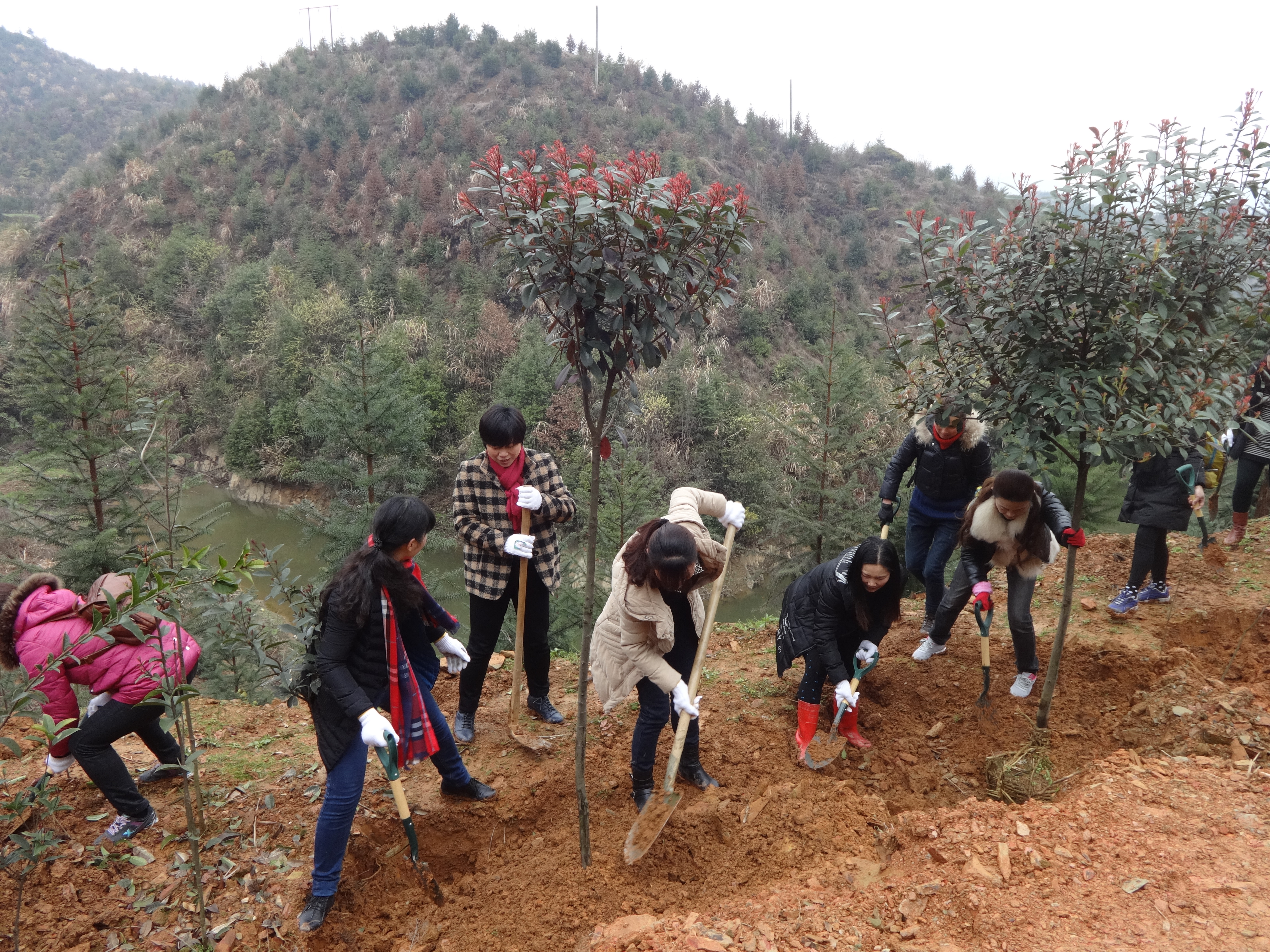 当天上午,义务植树队员手持铁锹、锄头,挖坑、填土、浇水、每道工序都一丝不苟,活动现场欢声笑语一片。两个多小时后,300余棵红叶石楠整齐地站立在兰家洞水库旁。